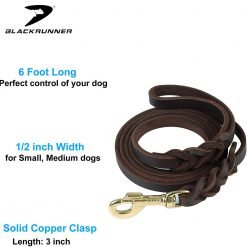 - Smooth and refined leather dog leash is half inch wide with non rust stainless hook.